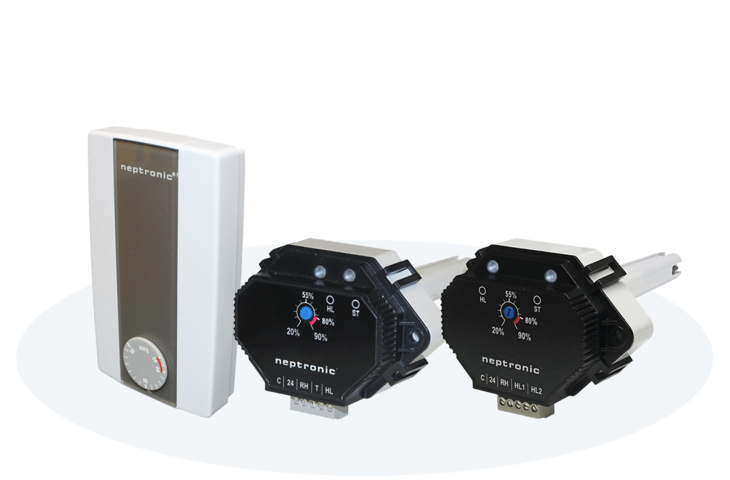 Neptronic Feuchtigkeitsregler, die mit 24 Vac betrieben werden, bieten zuverlässige Leistung, wenn sie mit Neptronic Befeuchtern gekoppelt oder in umfassendere Gebäudeautomationssysteme integriert werden, und gewährleisten langfristige Zuverlässigkeit und eine vereinfachte Installation.